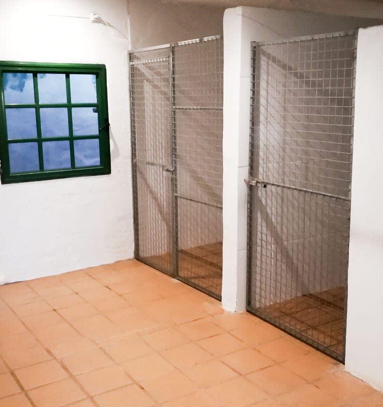 Disponemos de habitaciones individuales 2 x 1,20 m o dobles 2 x 2 m, (para parejas o tríos). Todas las habitaciones están alicatadas, tanto piso como paredes para facilitar la limpieza y desinfección diaria. Cada habitación dispone de una cámara de vigilancia, que nos permite controlarlos durante las horas que estén en sus habitaciones y también grabar lo que suceda las 24 horas del día.